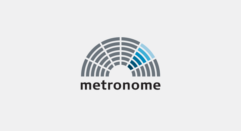 Metronome är huvudman för tv- och filmproduktionsbolag i hela Norden. En logotyp gjordes som ger egen identitet men som också är en symbol för paraplyfunktionen. Metronomes grafiska riktlinjer är ett paradexempel på en minimal instruktion som ändå reglerar allt.